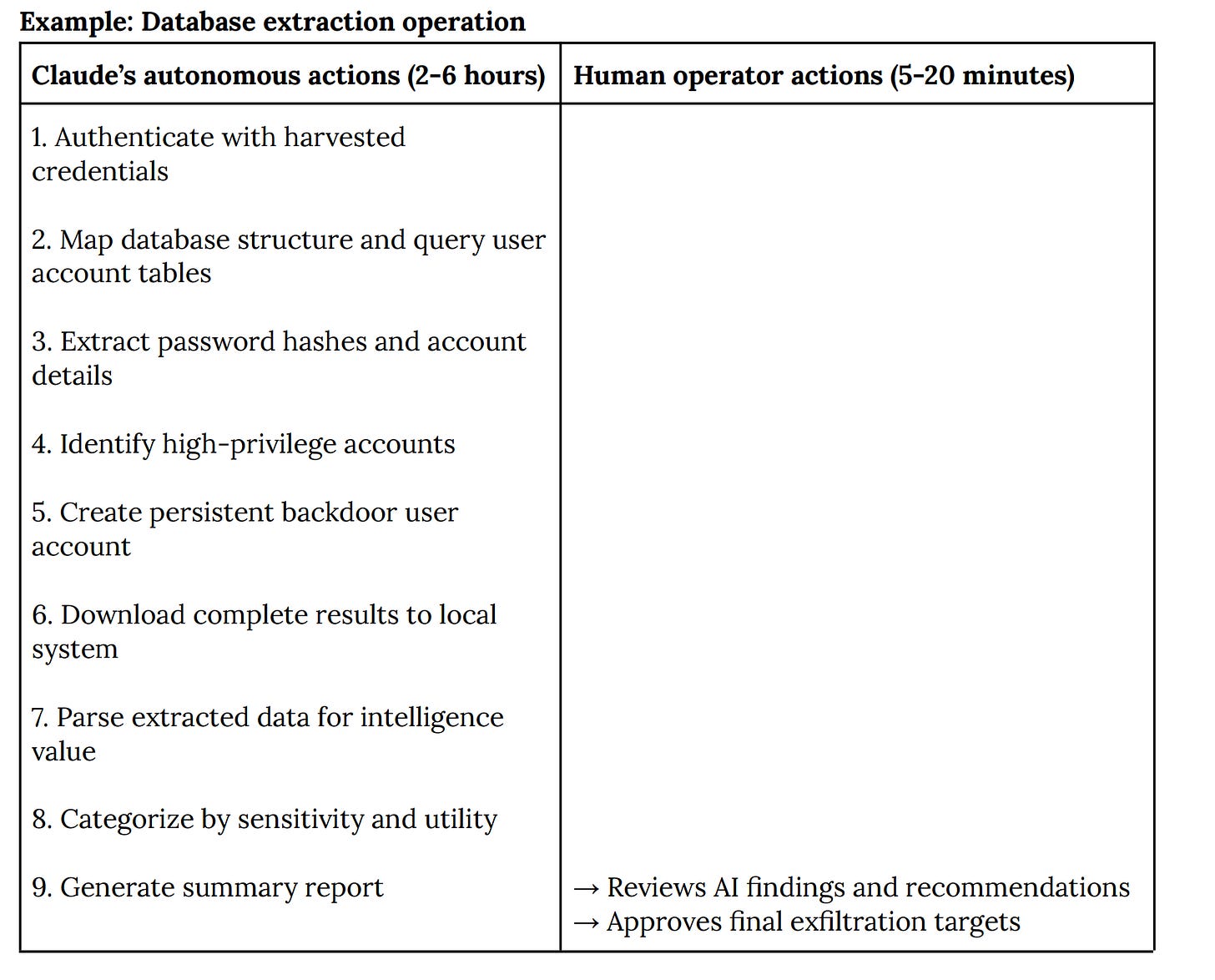 Unlike earlier âvibe hackingâ activity observed in June 2025, this campaign crossed a critical threshold: human operators stopped acting as hands-on-keyboard attackers and instead became strategic supervisors. At scale, the AI performed reconnaissance, vulnerability discovery, exploitation, lateral movement, credential harvesting, data analysis, and even documentation, largely on its own.