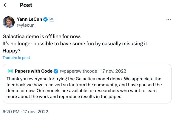 Without this phase, models are far more likely to go off the rails—as we saw with Meta’s Galactica, which launched just two weeks before ChatGPT-3 and was quickly pulled after trolls exploited it to generate misinformation
